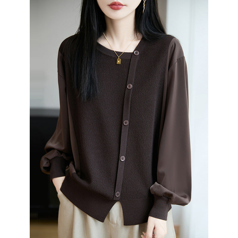 Cincupies Senior Sense Loose External Medium And Long Knitted Cardigan Jacket + Sleeveless Metal Buckle Joint Skirt