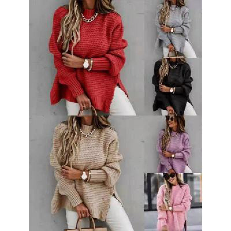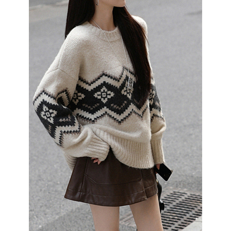 One-Word Shoulder Sweater Autumn And Winter Lazy Wind Loose Retro Wear Bottom Shoulder Collar Knitted Blouse Female Retro Style