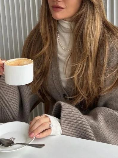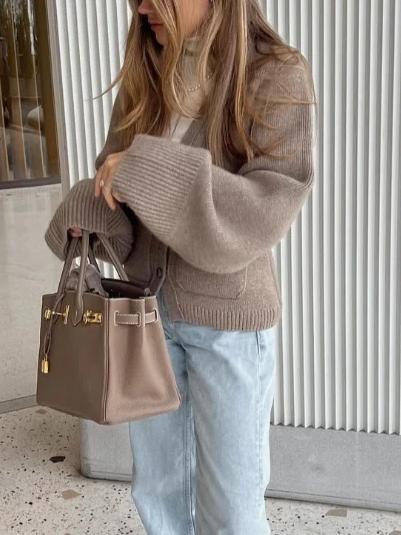 2025 Autumn And Winter Pure Color V-Neck Single Buckle Knitted Cardigan Lazy Loose Comfortable Warm