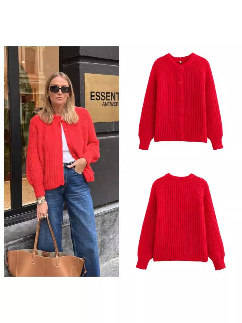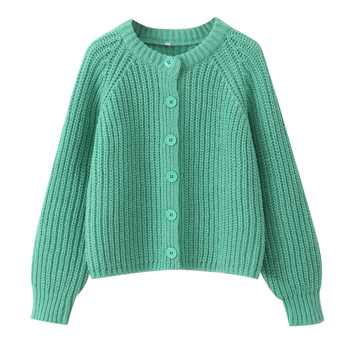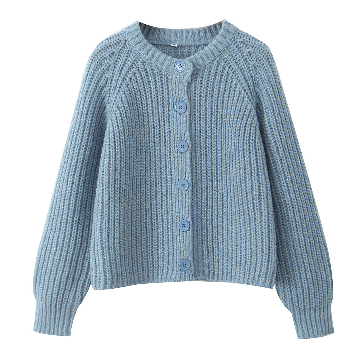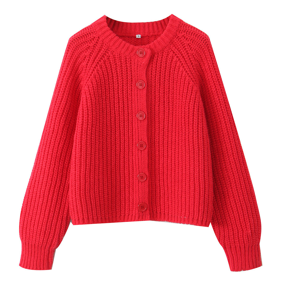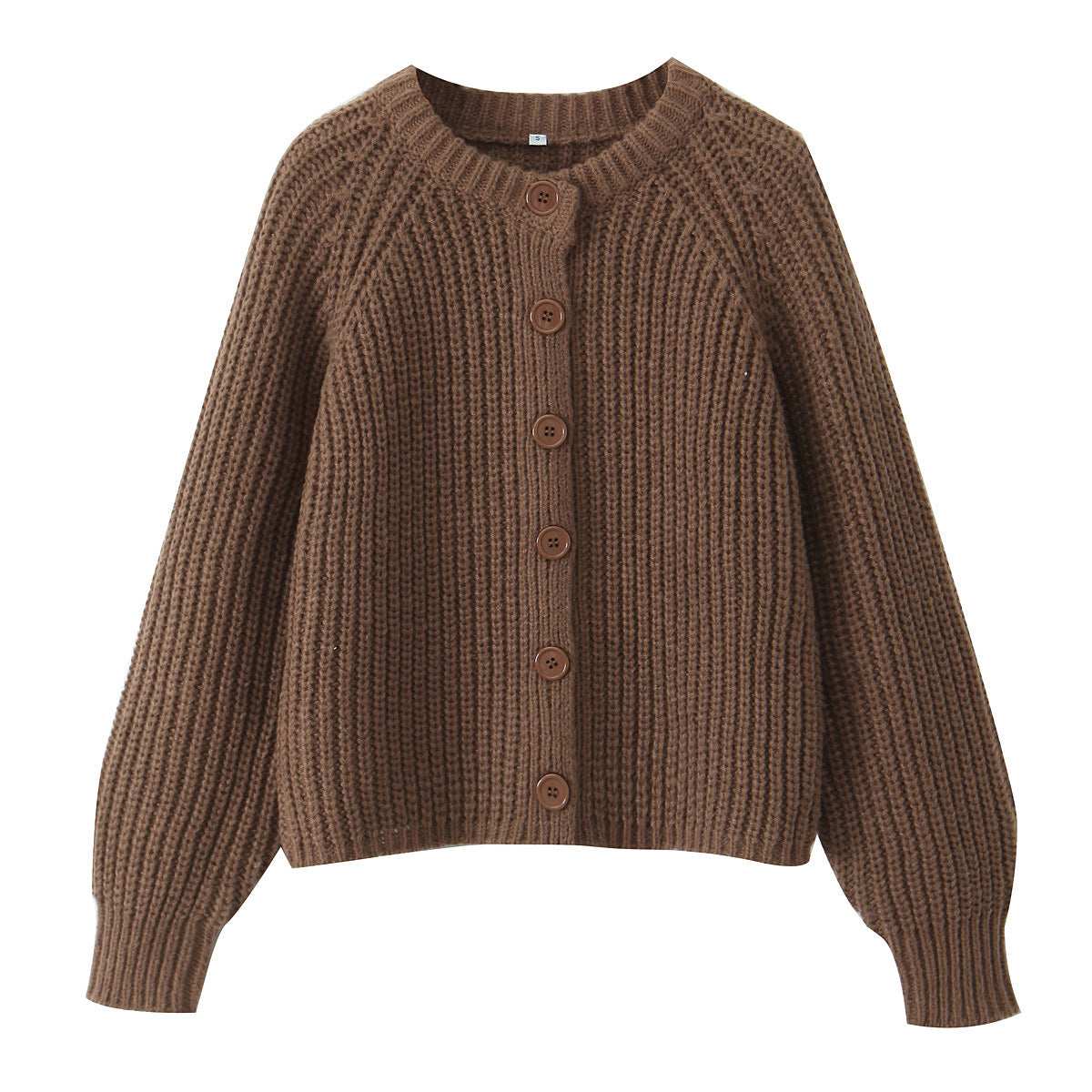Autumn/Winter 2025 New Women's Solid-Color Casual Fashion Coarse Knit Long-Sleeved Sweater Cardigan Jacket