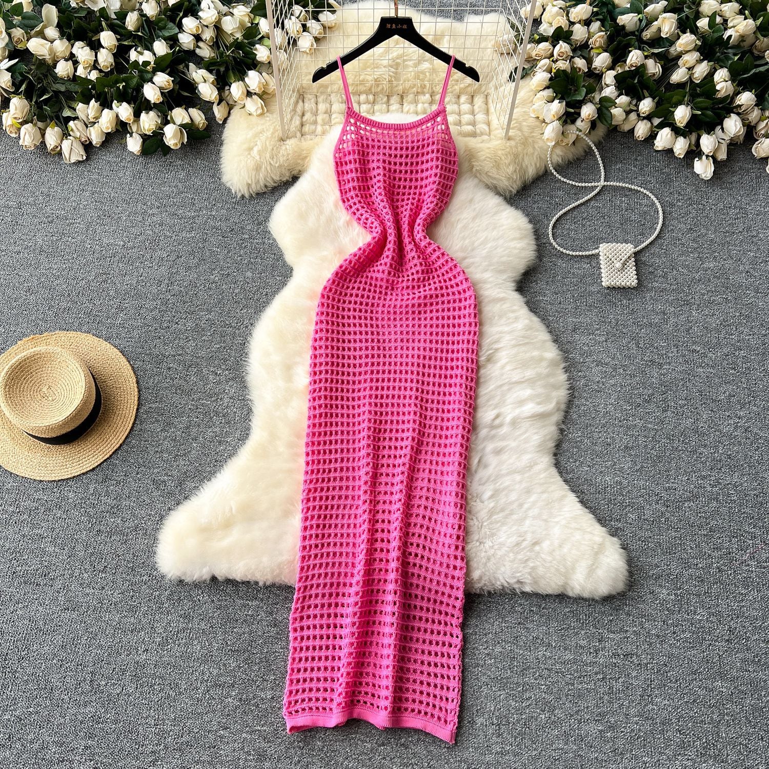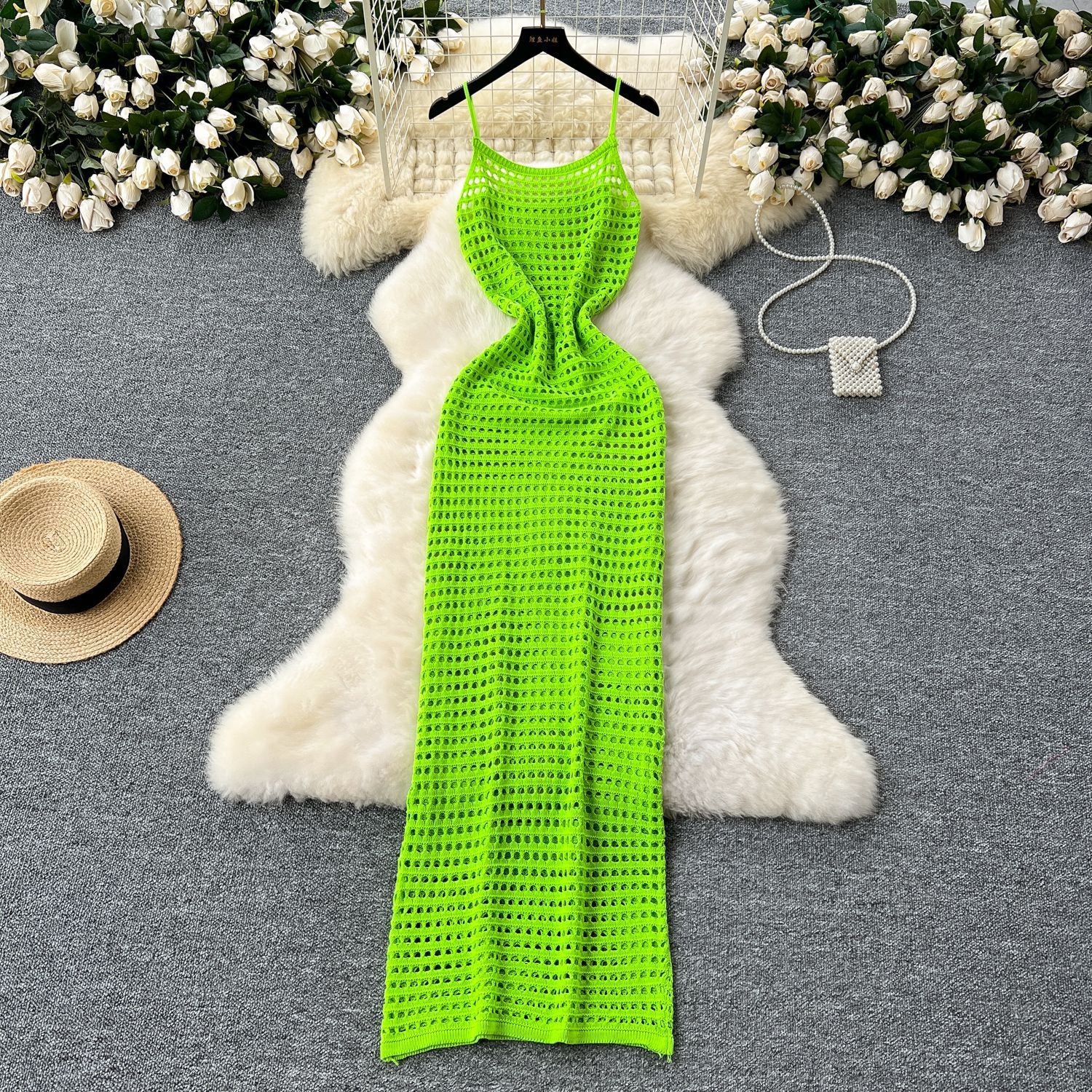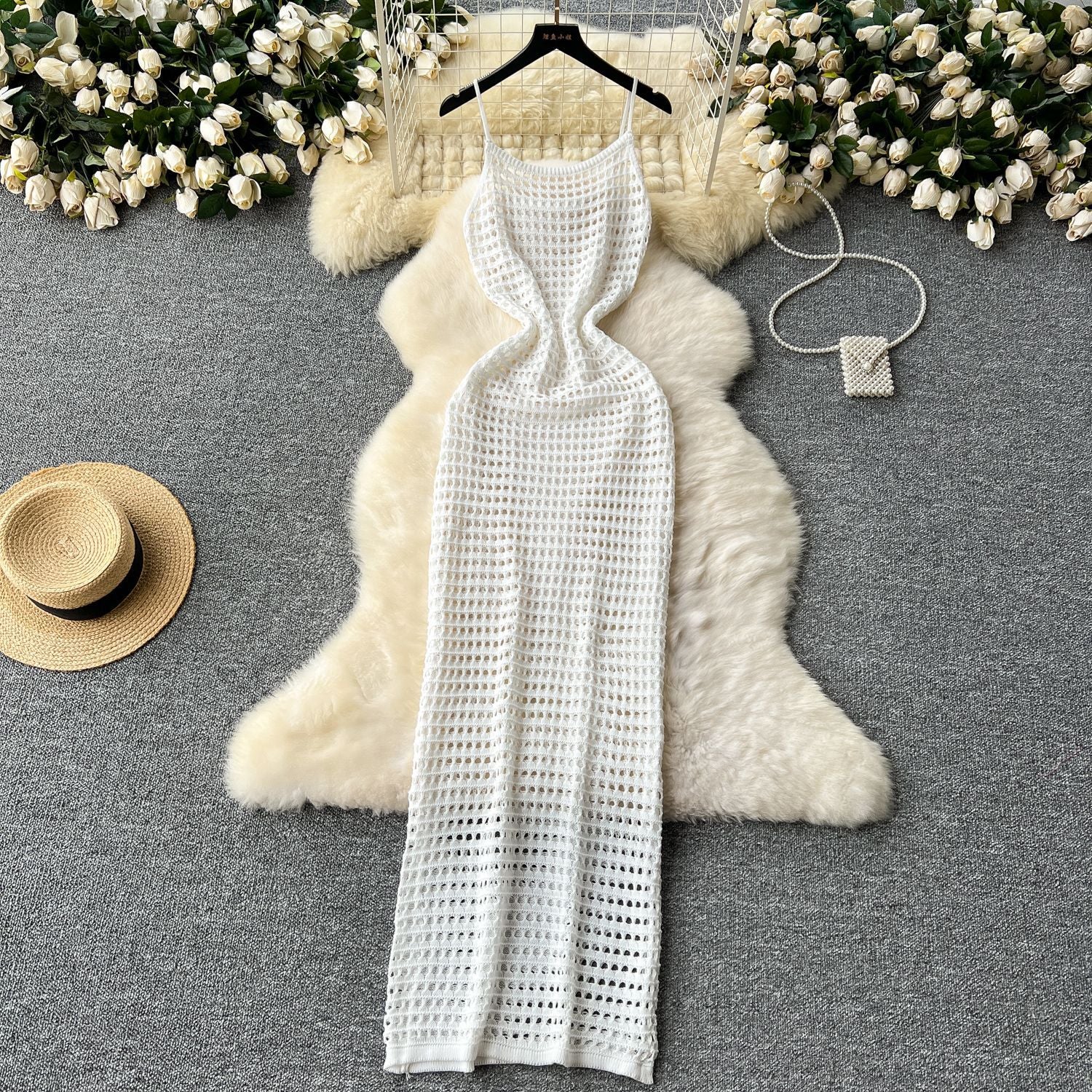 Small-Scale Vintage Hollow Crocheted Shoulder Sling Knitted Shirt Two Sets Of Women's Half-Dress