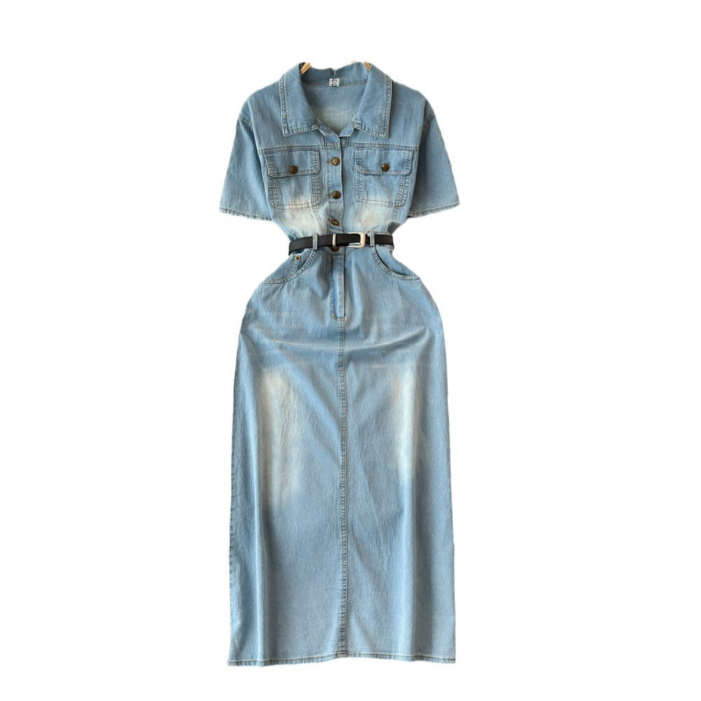Vintage Hong Kong Style Denim Dress Woman 2025 Summer New High-End Temperament To Show Thin Long Dress