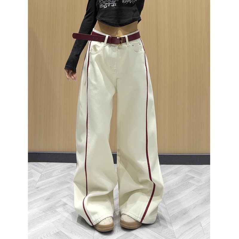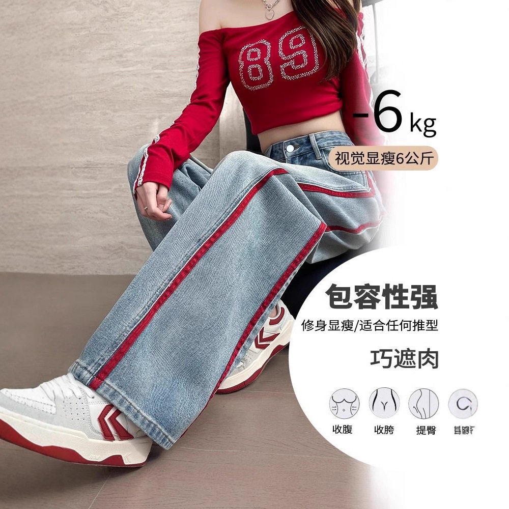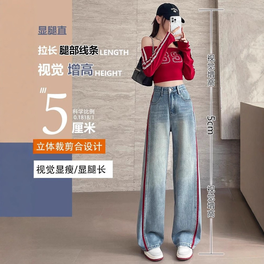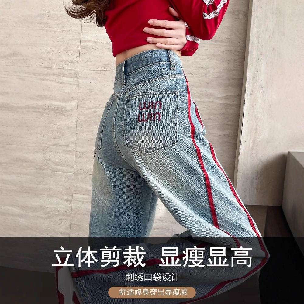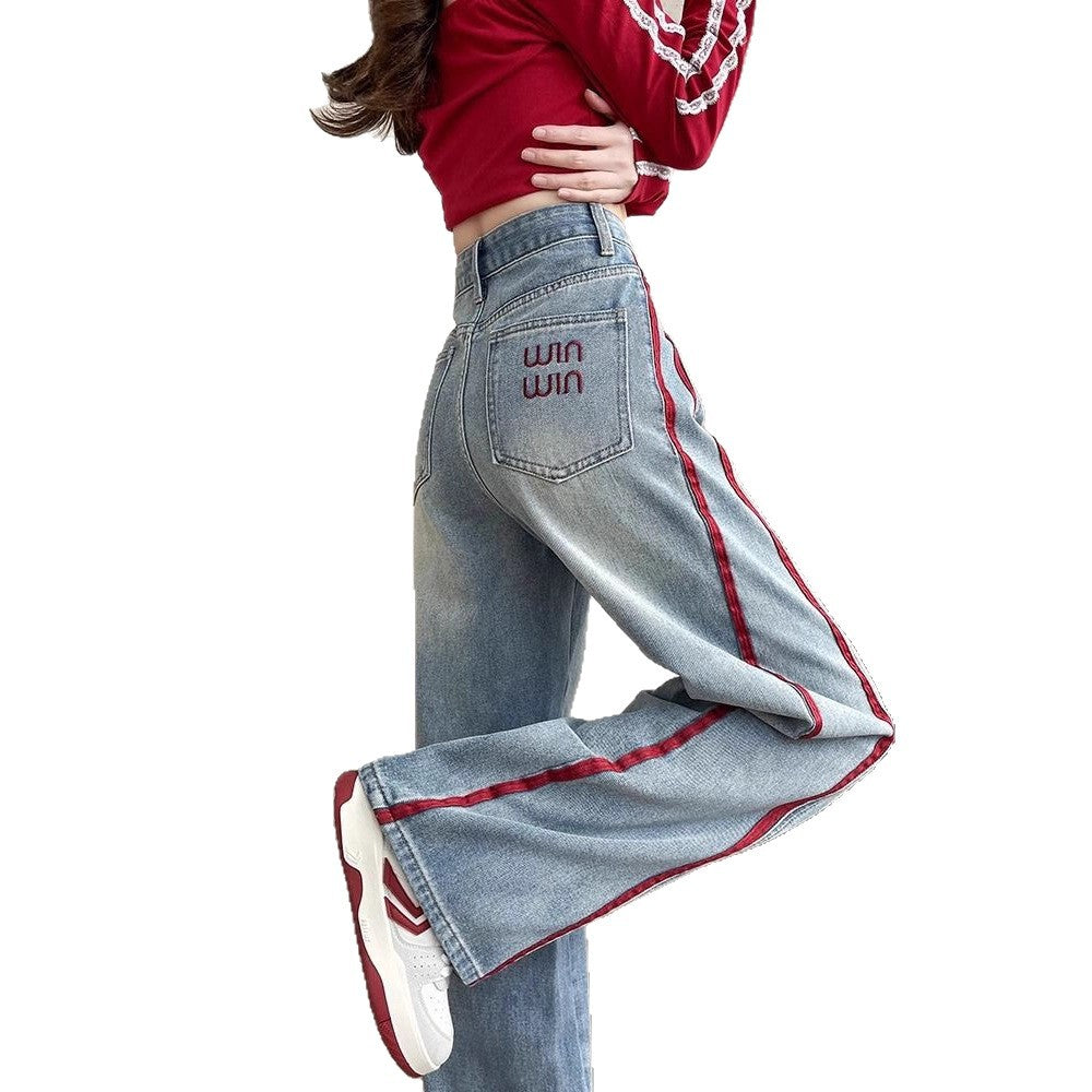 Embroidered Broad-Legged Jeans Women's Spring And Autumn 2025 Hit High-Waisted Loose Design Sense Spliced Straight Straight Trousers