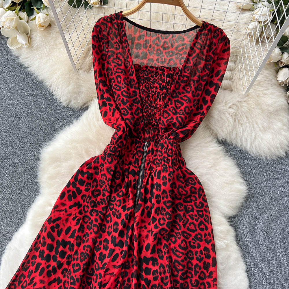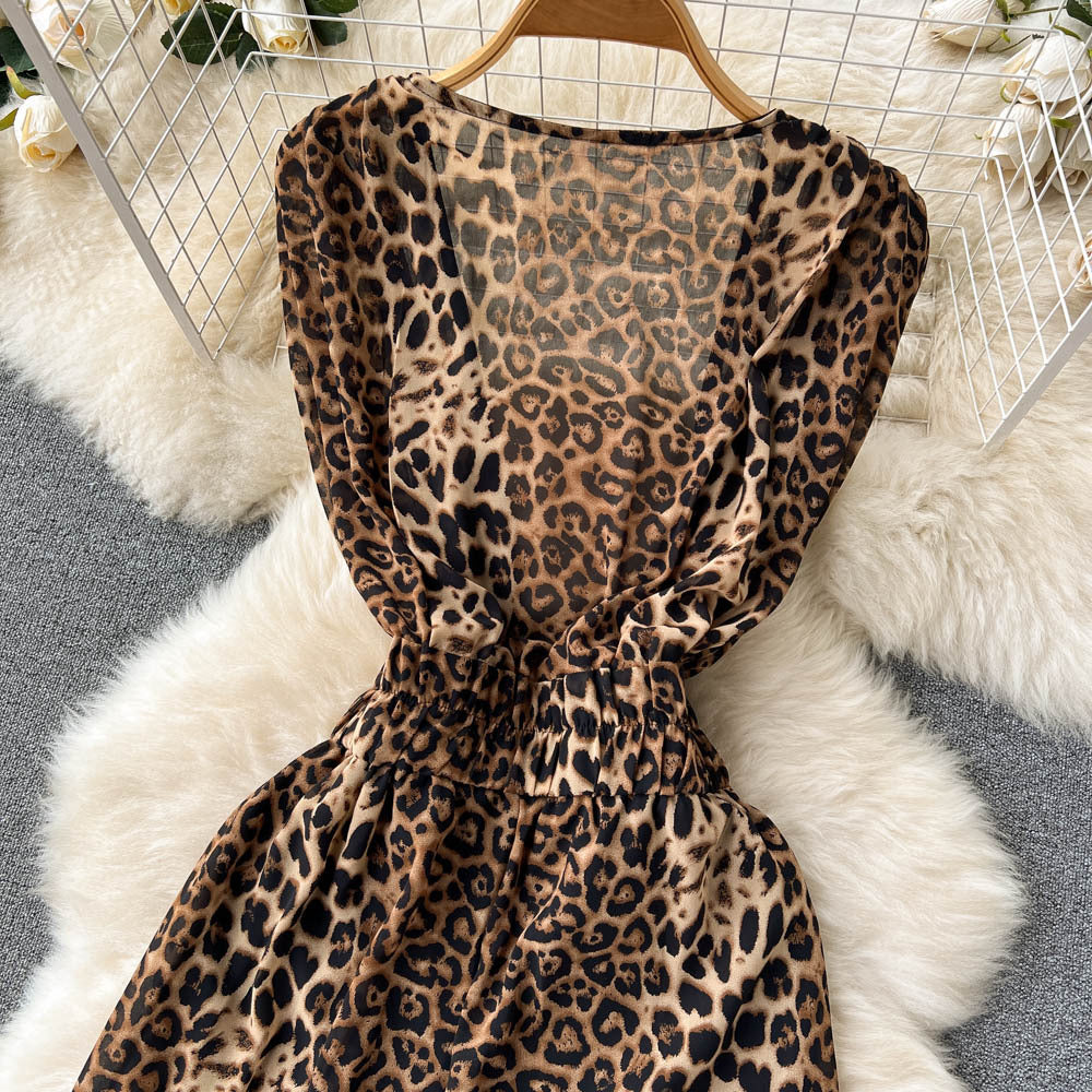 2025 Summer Dress New Niche Light Familiar Wind V To Receive Waist Thin Temperament French Pressure Folding Printing Chiffon Dress