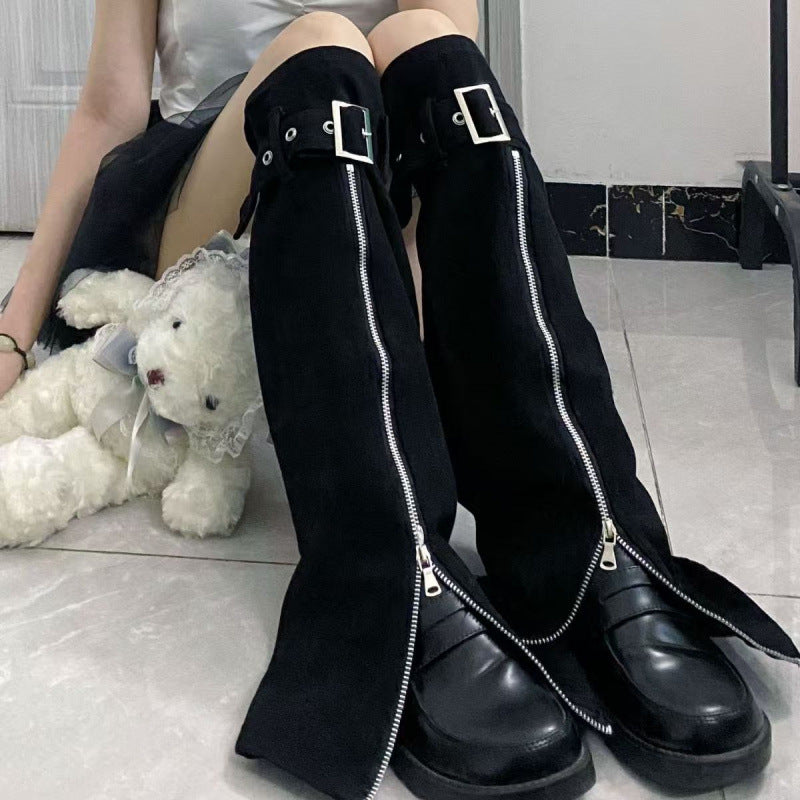 Cincupies Senior Sense Loose External Medium And Long Knitted Cardigan Jacket + Sleeveless Metal Buckle Joint Skirt