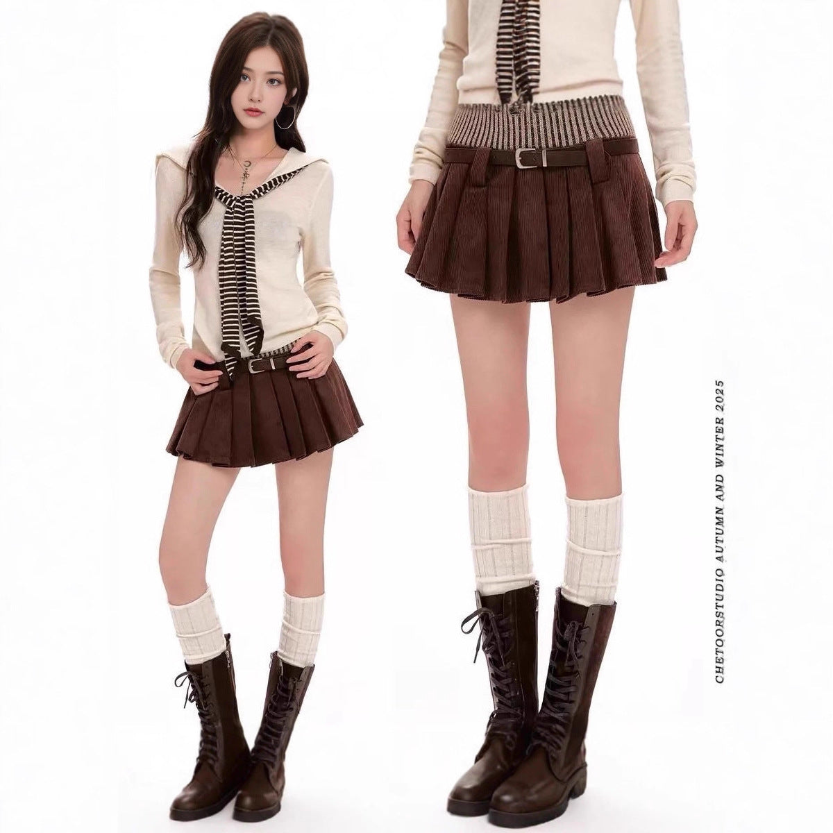 2025 100-Fold Skirt Women's New Dress With White Half-Dress Korean Version Of The College Style Skirt A Skirt
