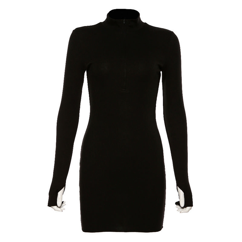2025 Autumn And Winter Fashion Women's New Long-Sleeved Zipper Round-Neck Bag Hip Repair Dress