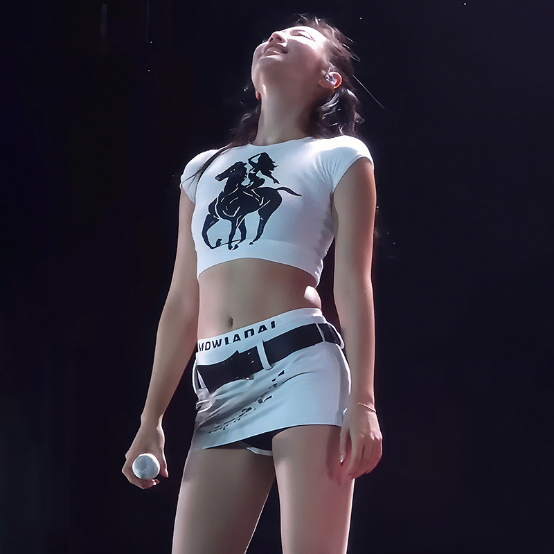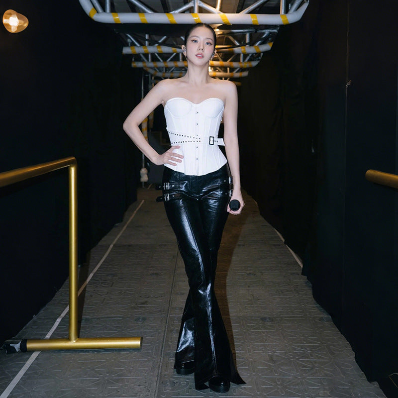 2025 Autumn And Winter New Women's Clothing Jennie With The Same Hot Girl Collar Print Tops The Hips Long Skirt