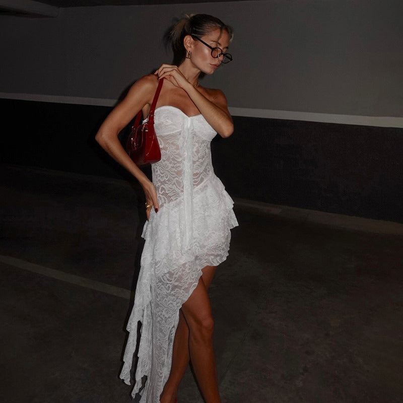Small-Scale Vintage Hollow Crocheted Shoulder Sling Knitted Shirt Two Sets Of Women's Half-Dress