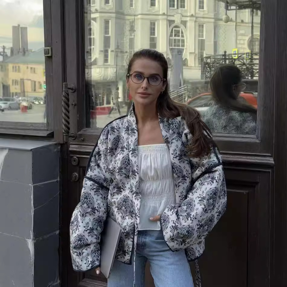 2025 Autumn And Winter New Women's Design Sense Of Leisure With Long-Sleeved Printed Cotton Jacket