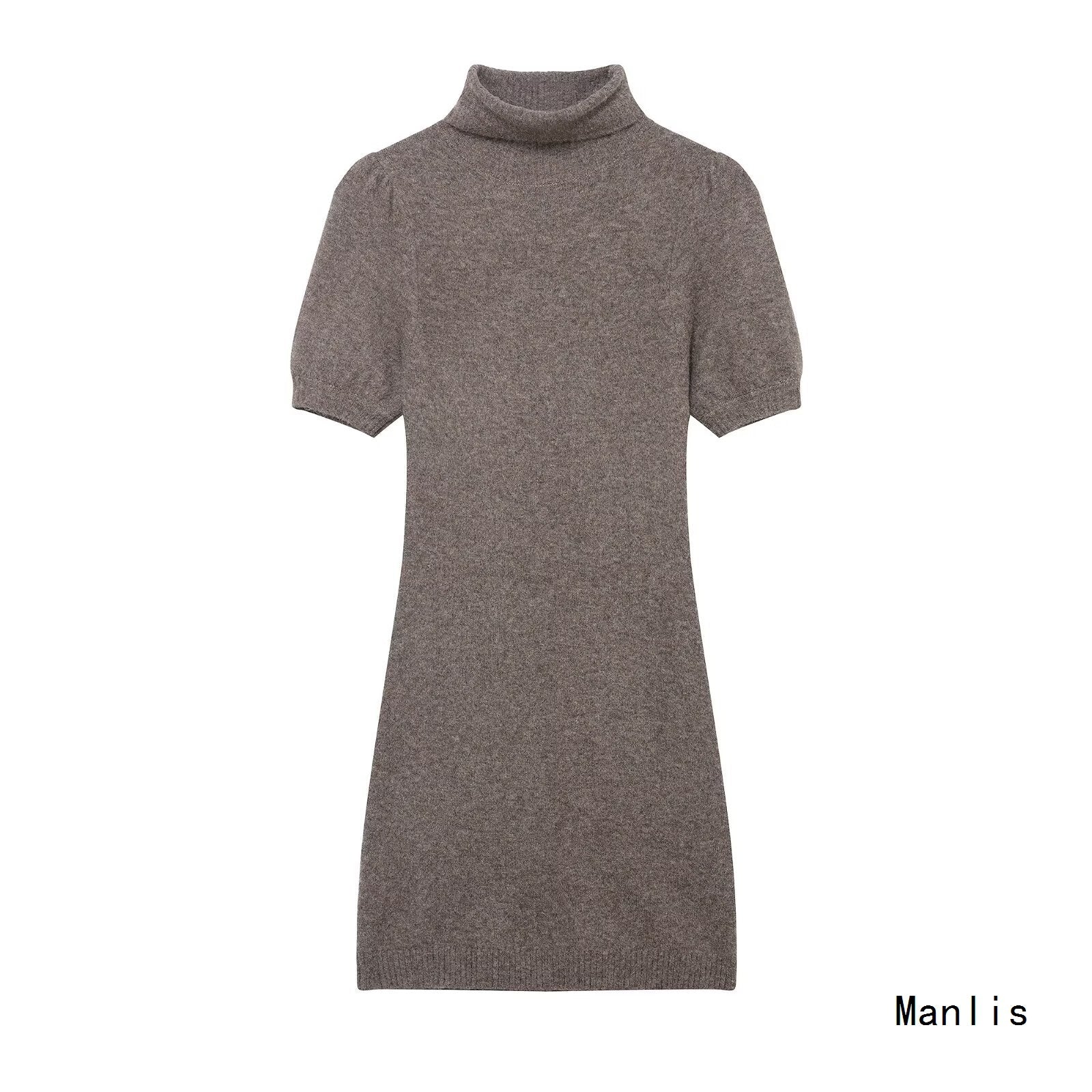 Women's Fashion Dress 2025 Autumn Design Feeling Cross-Folded Slim Top-Cuffed And High-Necked Dress