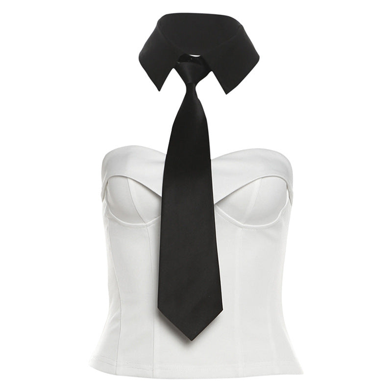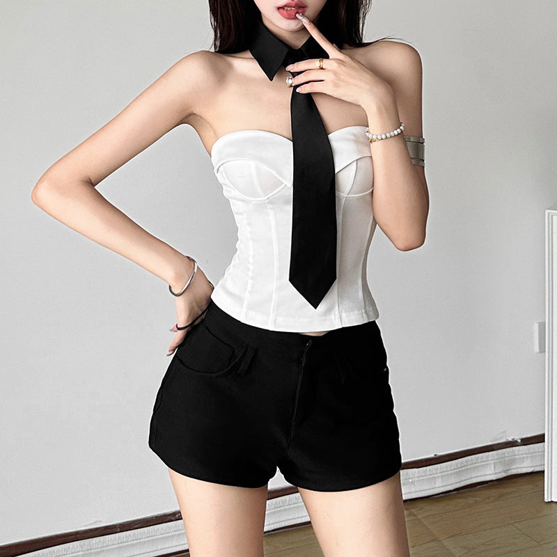 2025 Autumn And Winter New Women's Fashion Hottie Breast Sexy Bare Vest Bump Color Tie Two Sets
