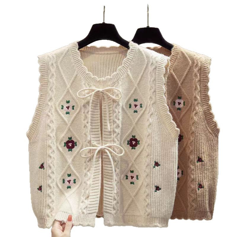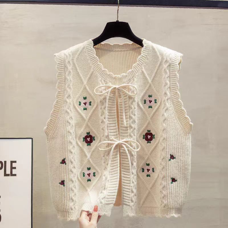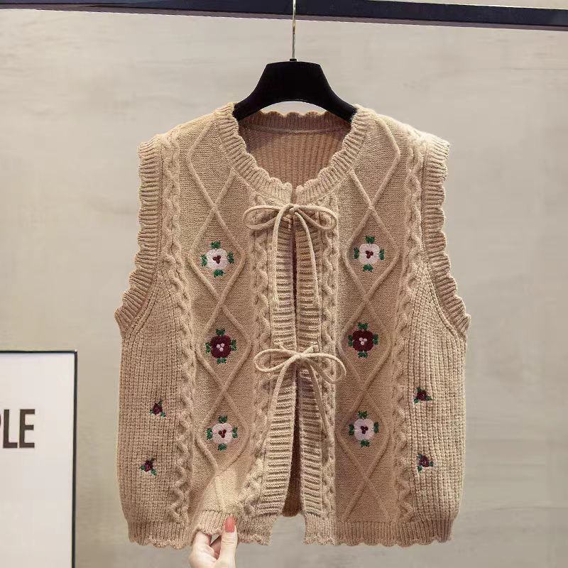 2025 Spring Autumn New Wearing Horse Clip Outside The Folding Sweater Shoulder Tide Cardigan Knitting Vest Woman