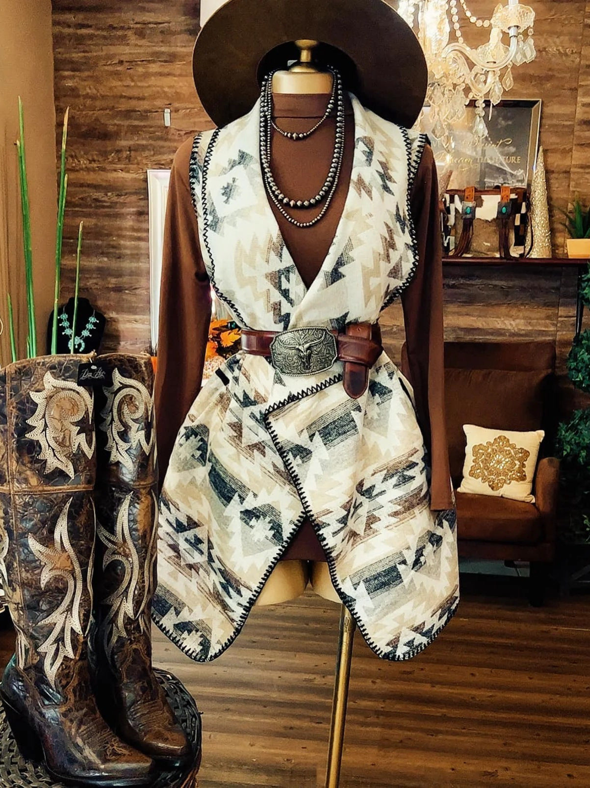 2025 Women's Digital Print Sleeveless Vest Cross-Necked Cardigan Shawl Coat