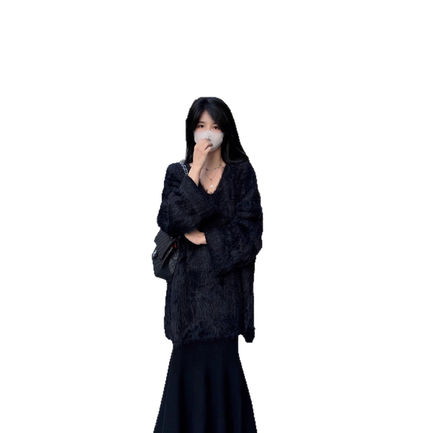 Cincupies Senior Sense Loose External Medium And Long Knitted Cardigan Jacket + Sleeveless Metal Buckle Joint Skirt