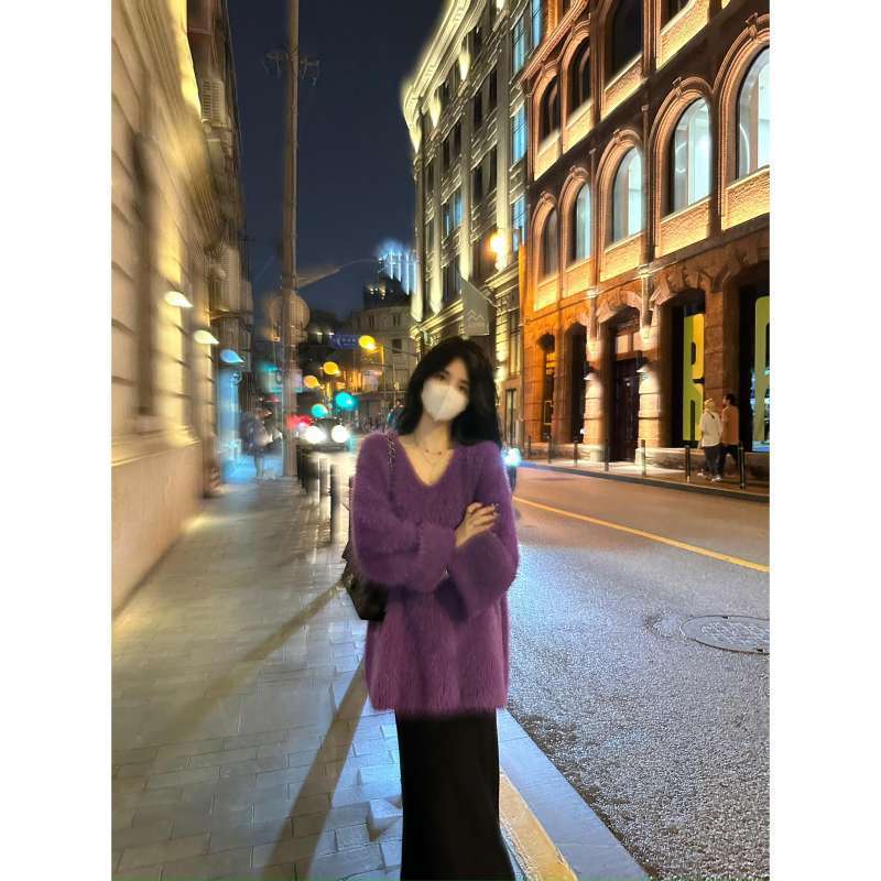 Autumn And Winter Fashion Loose Lazy Sweater Comfortable Imitation Sable Coat Female Purple French Gentle Wind Korean Version
