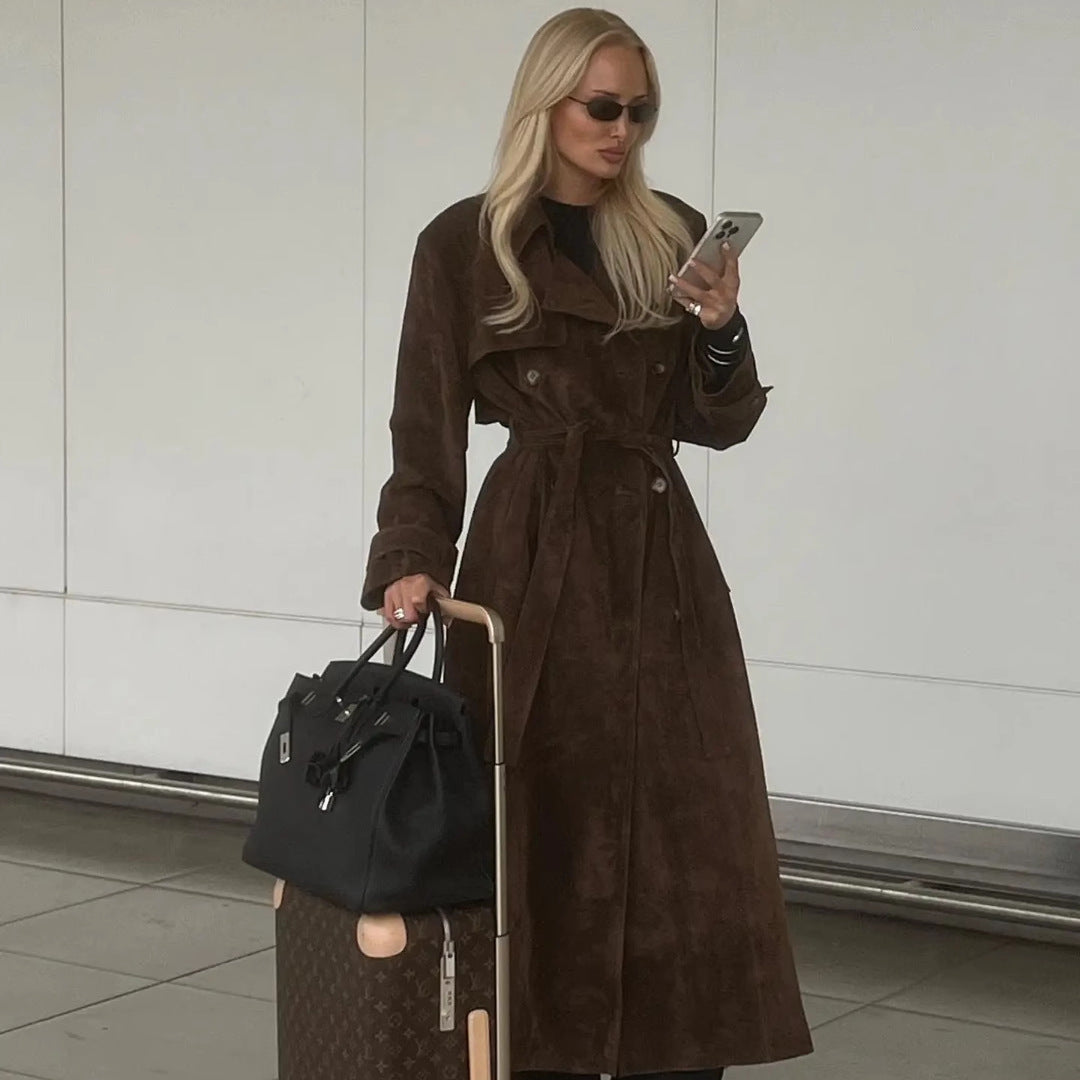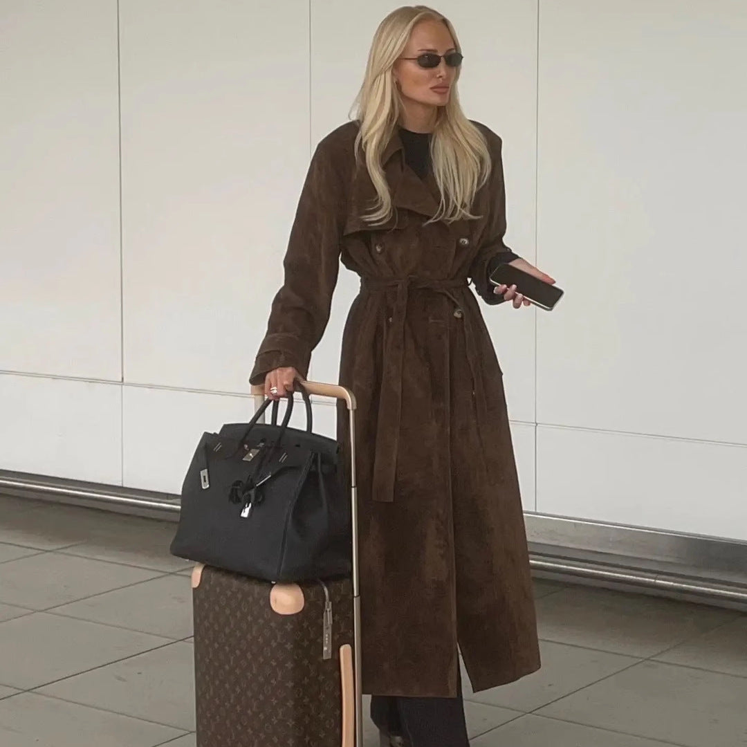 Autumn And Winter New Feeling Retro Brown Long Wind Coat Female Loose Casual Temperament Coat