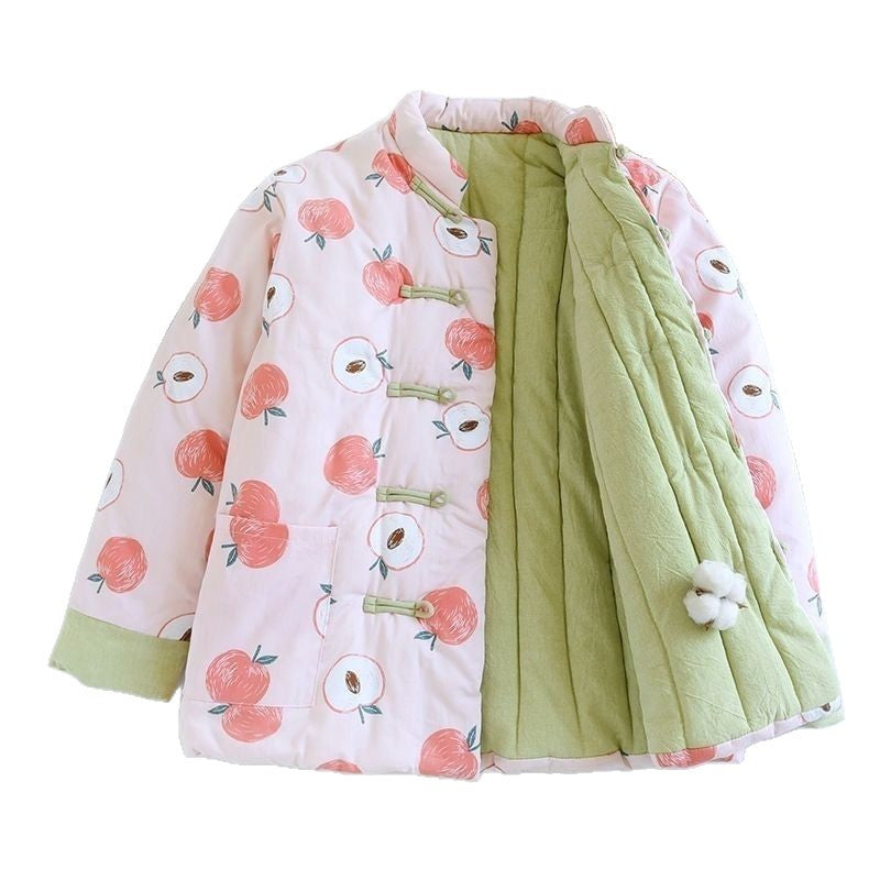 Chinese Style Buckle Coat Cotton Jacket Women's Fashion Elegant Warm Cotton Clothes National Tide Printing Cotton Coat