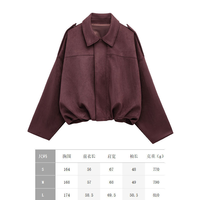 Coat Velvet Loose Spring Girl Casual Blouse Zipper Fashion Bomber Jacket 2025 Bat Sleeve Texture