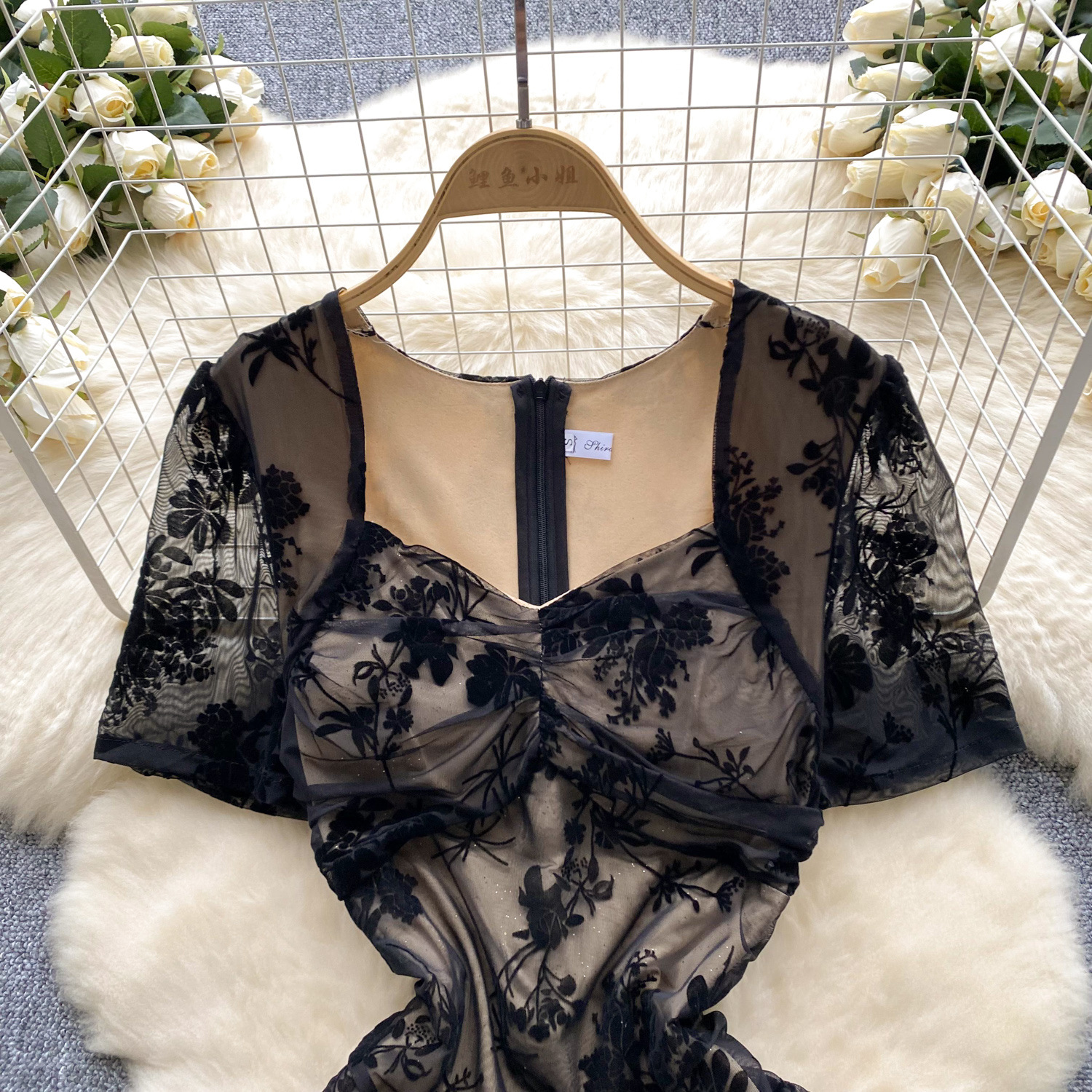 Small-Scale Vintage Hollow Crocheted Shoulder Sling Knitted Shirt Two Sets Of Women's Half-Dress