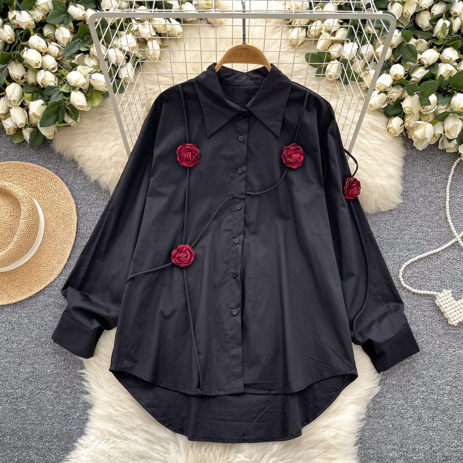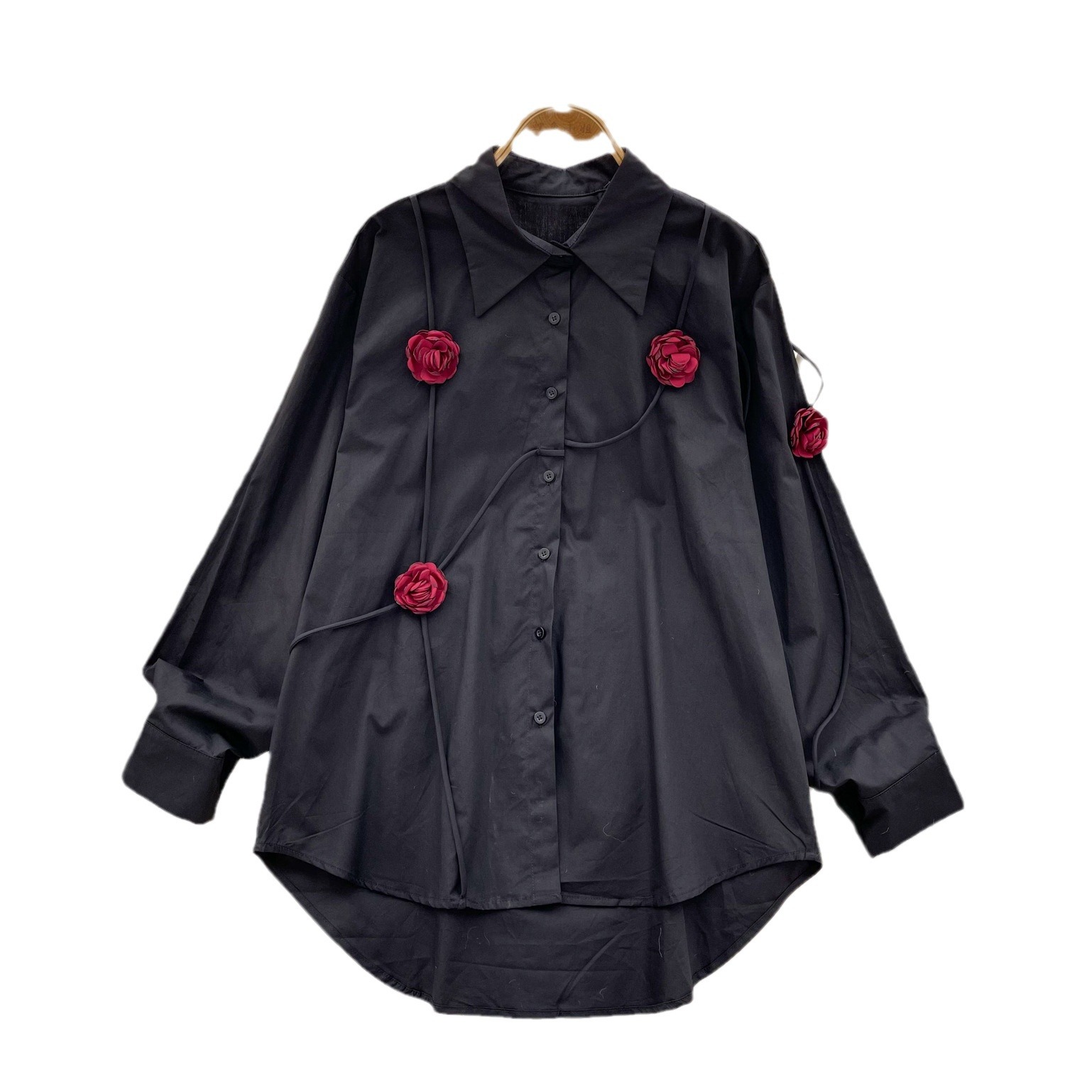 French Niche Design Three-Dimensional Flower Shirt Women's Autumn Loose Thin Ocean To Reduce The Age Of Chic Light Luxury Blouse