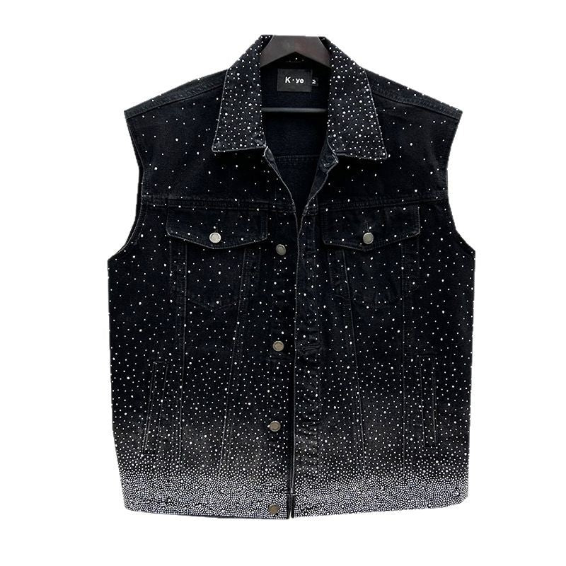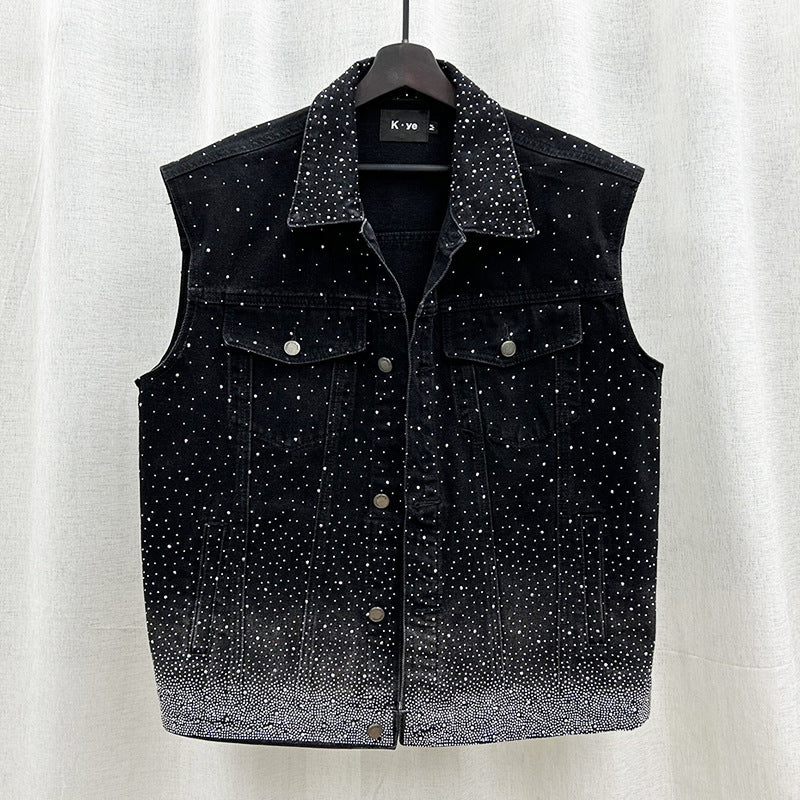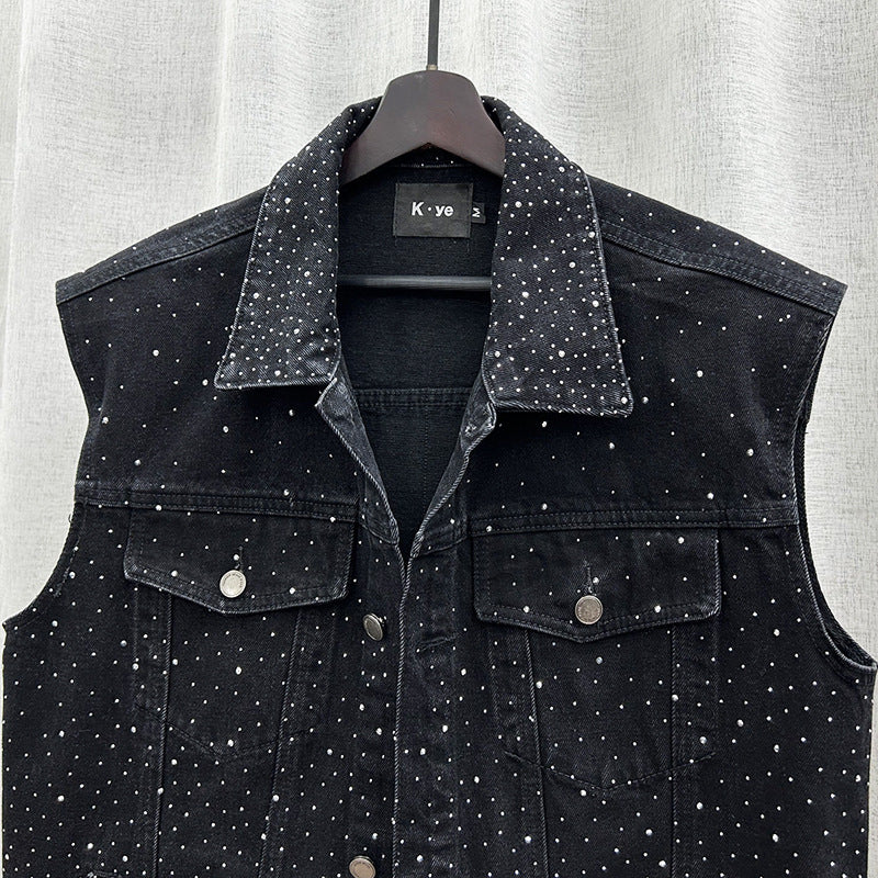 High-End Fashion Hot Full Of Star Denim Vest Coat Men's Fried Street Loose Sleeveless Vest Horse Clip Tide