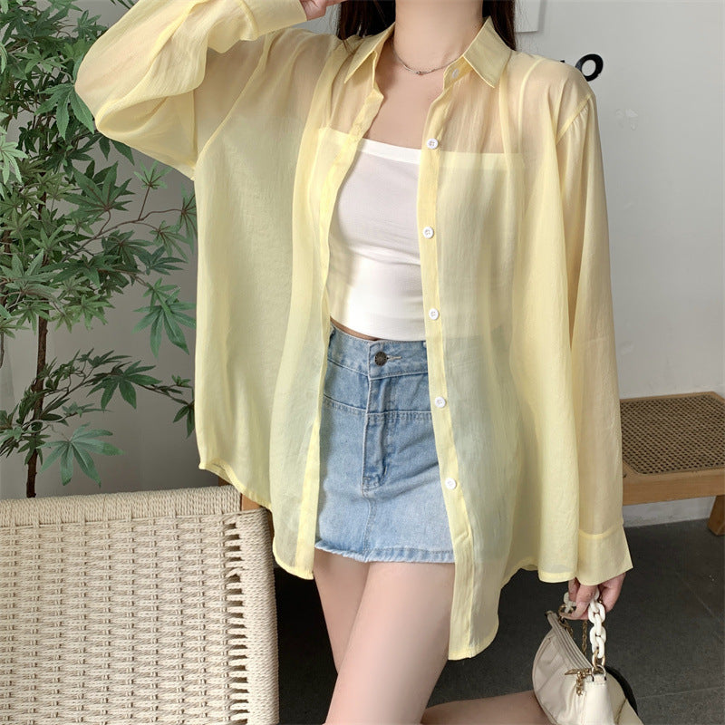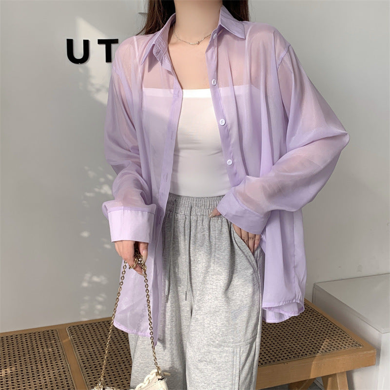Ice Silk Cardigan Small Loose Thin Long Sleeve Sunscreen Shirt Women's Summer Design Sense Back Open Fork Shirt