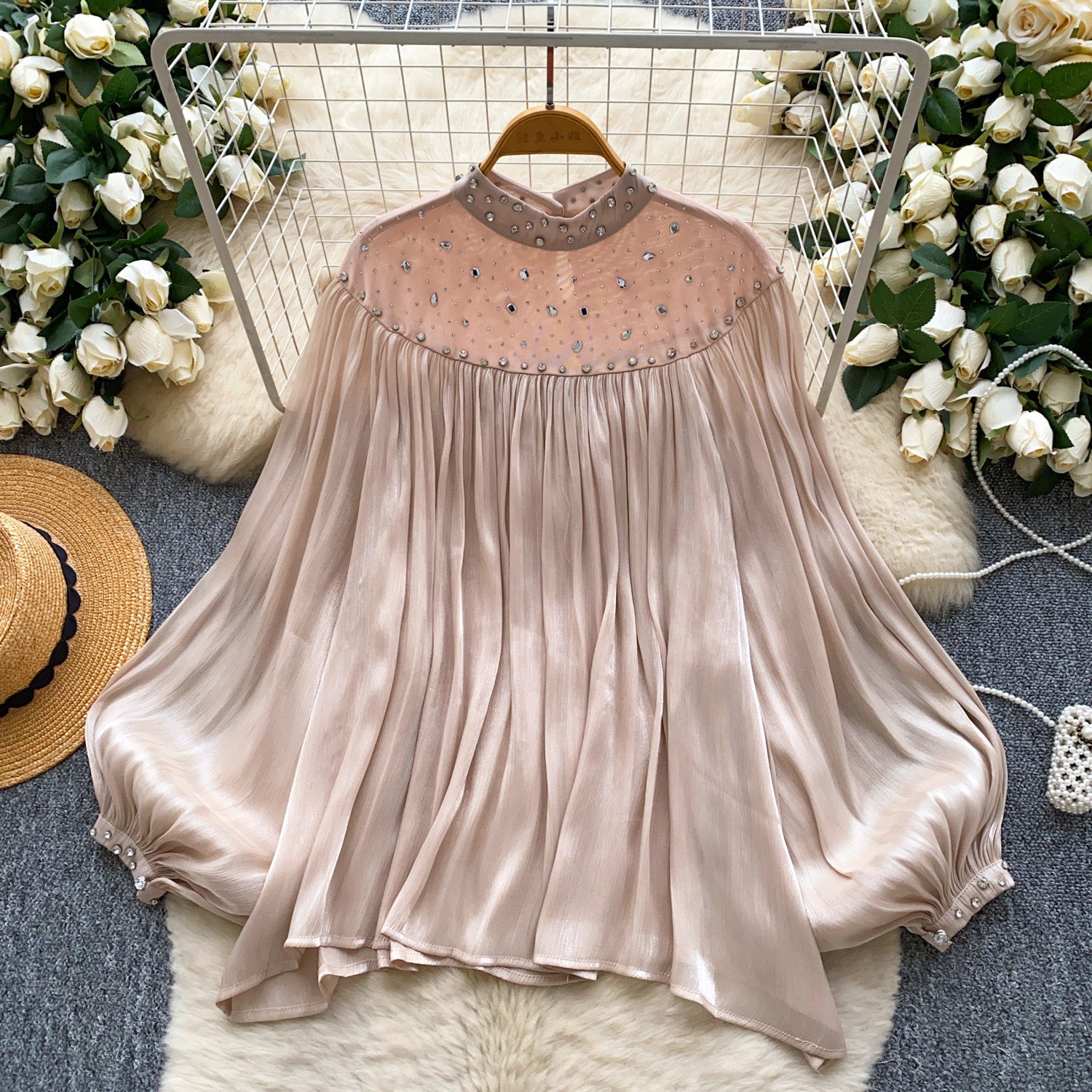 Small-Scale Vintage Hollow Crocheted Shoulder Sling Knitted Shirt Two Sets Of Women's Half-Dress
