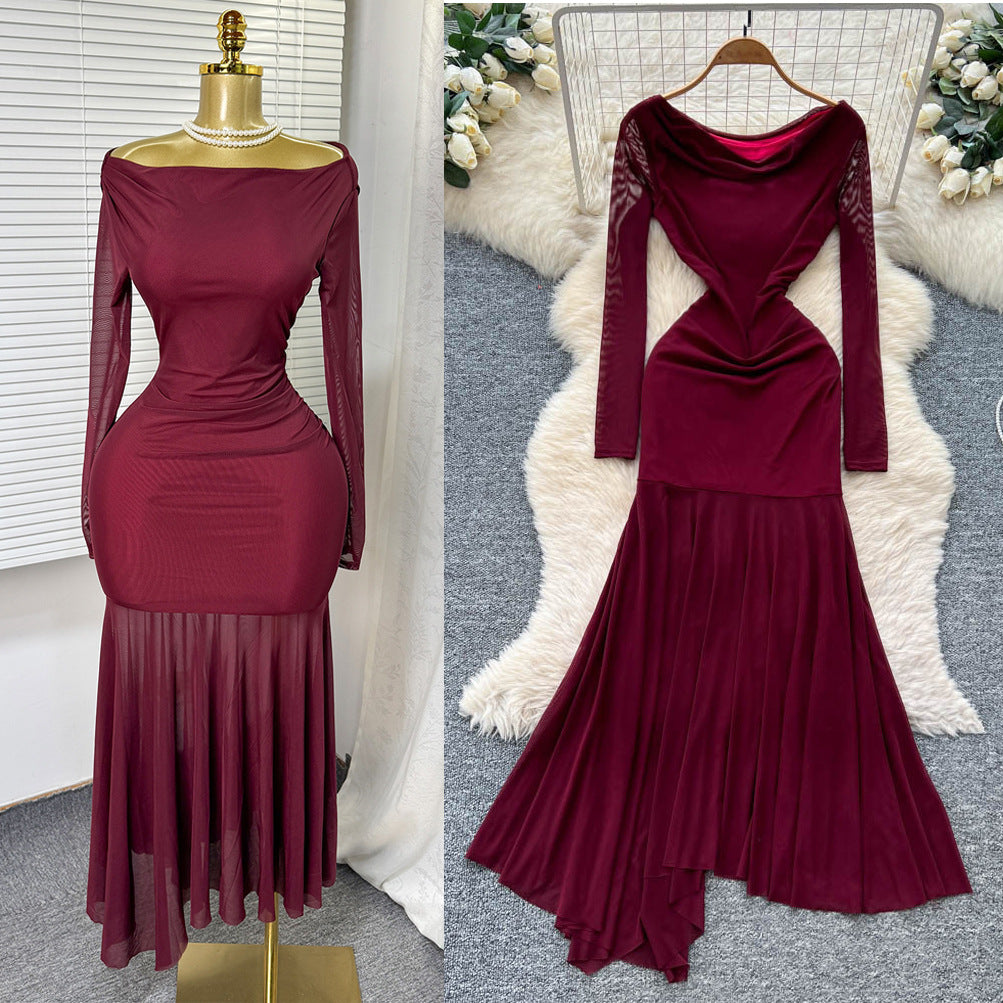 Women's Fashion Dress 2025 Autumn Design Feeling Cross-Folded Slim Top-Cuffed And High-Necked Dress