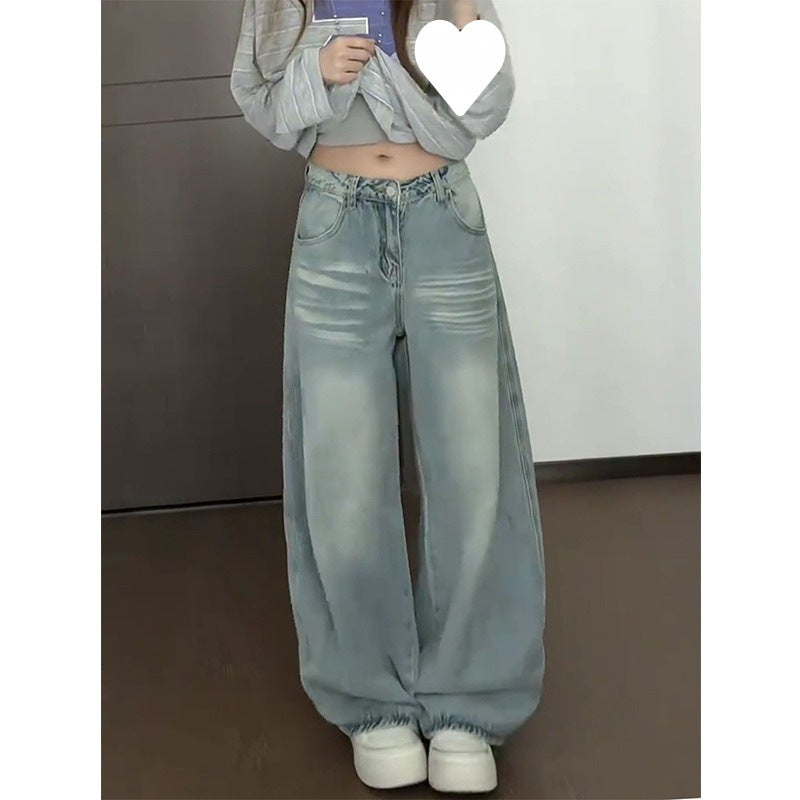 Light Blue High Street Design Loose Broad Leg Pants Women Lazy Wind Hip Hops Fatmm Straight Jeans