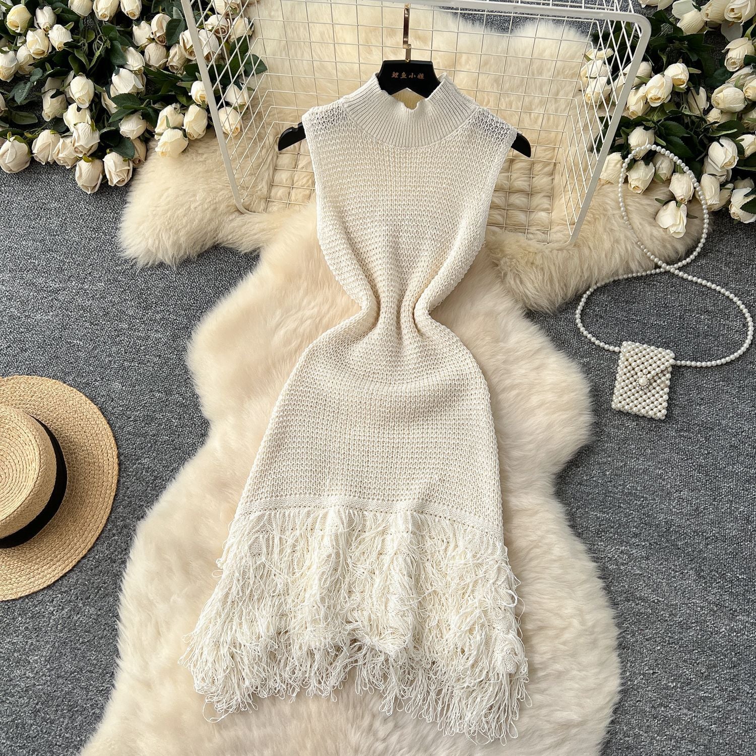 Simple Design Sleeveless Knitted Dress Women's Summer Hair-Throw Slimming Pure Hot Girl Short Skirt