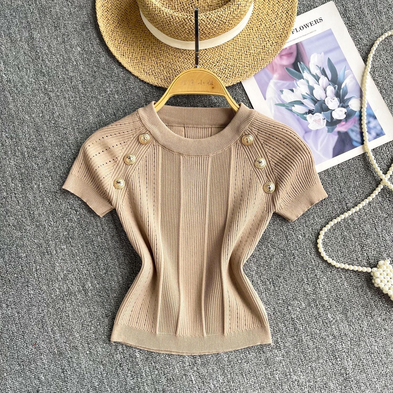 Spice Girls Knit Round Collar T-Shirt Girls Summer Thin Short Thin Design Feeling Fried Street Pure Desire Top