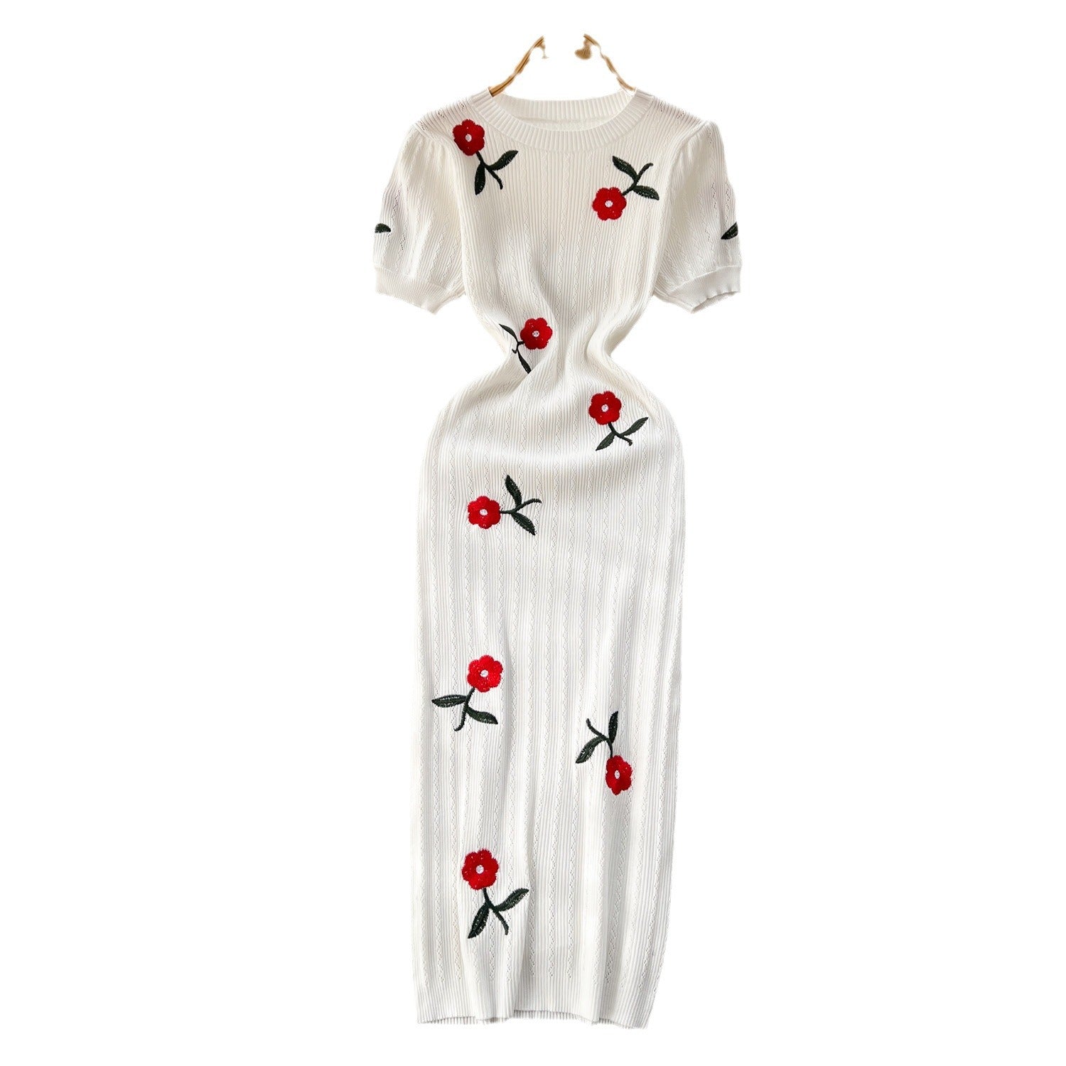 Summer Dress High-End Temperament Embroidered Rose Knitted Dress Women's Short Sleeve New Chinese Bag Long Skirt
