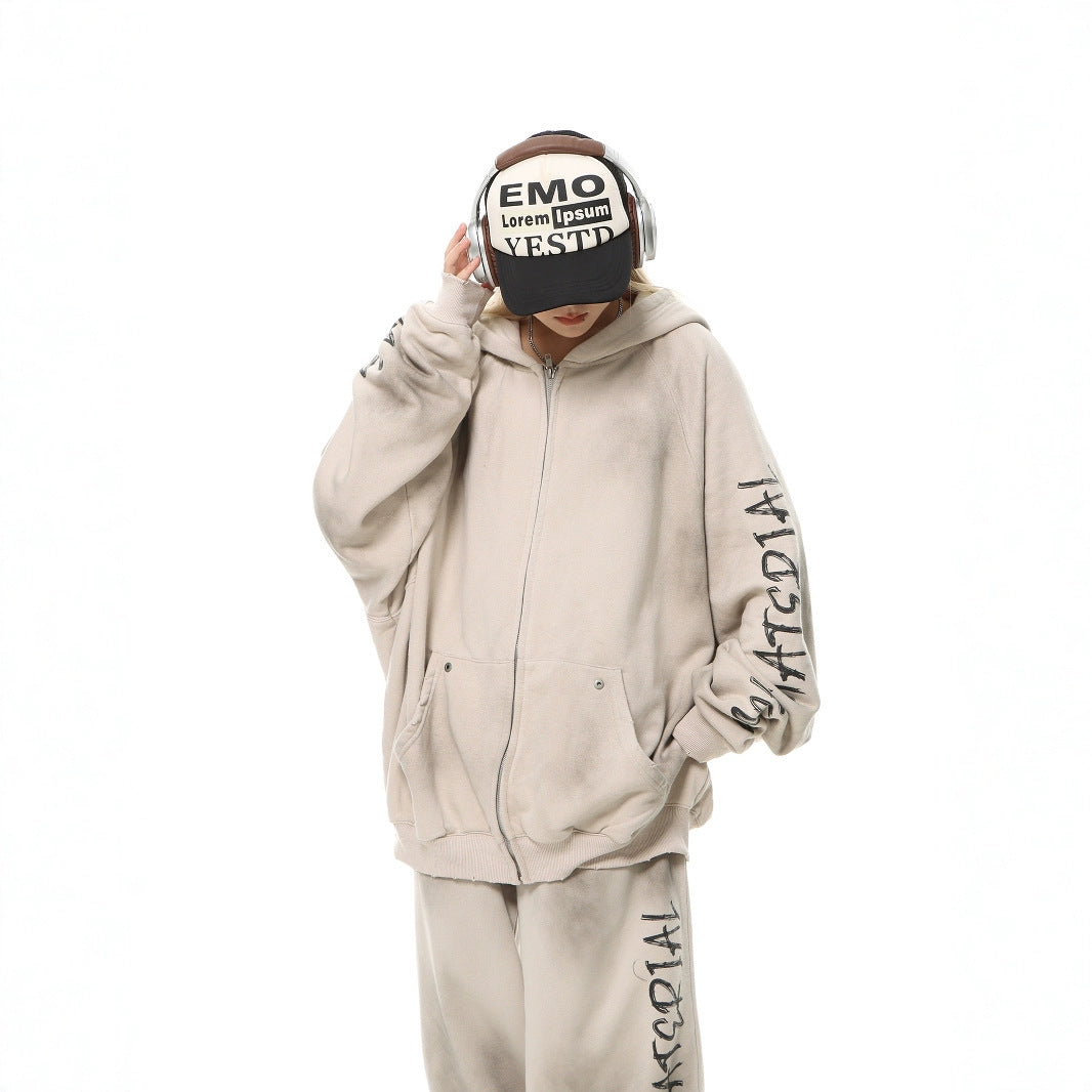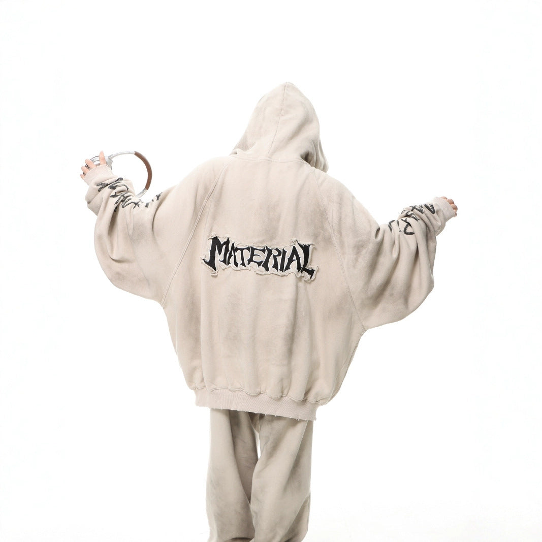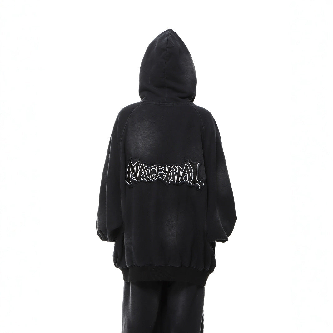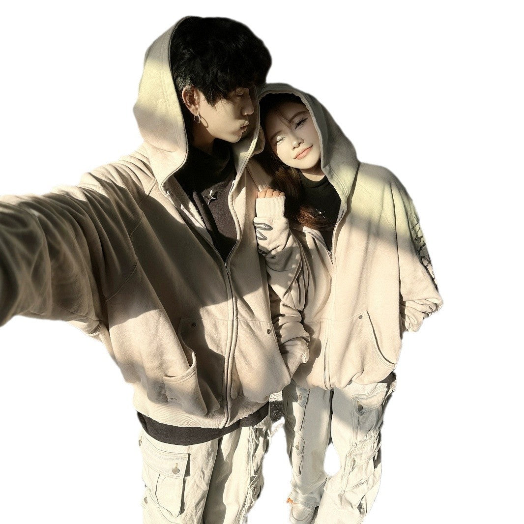 Vintage Mud Dyed Old Hooded Hoodie Sticker Oversize Couple With Open Shirt Zipper Handsome Coat