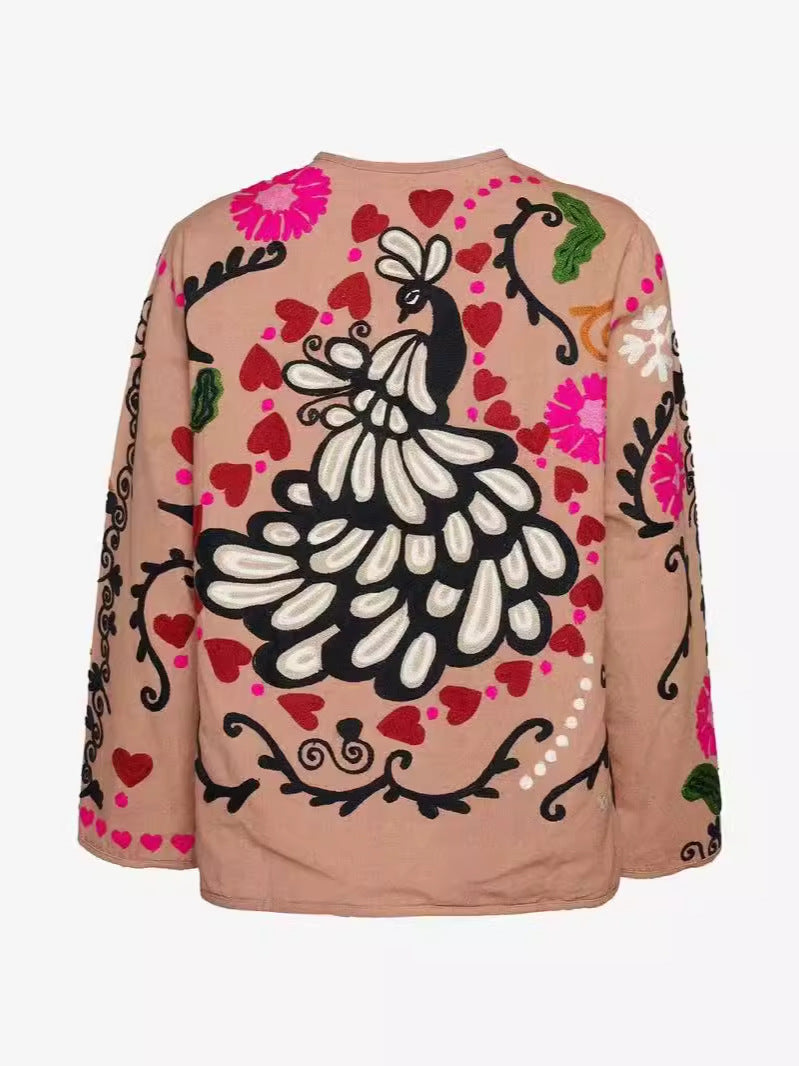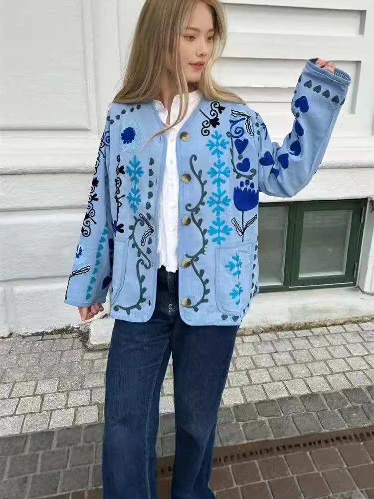 Women's Clothing 2025 New Pink Casual Wind Flowers Long-Sleeved Blouse Single-D Row V-Neck Jacket Woman