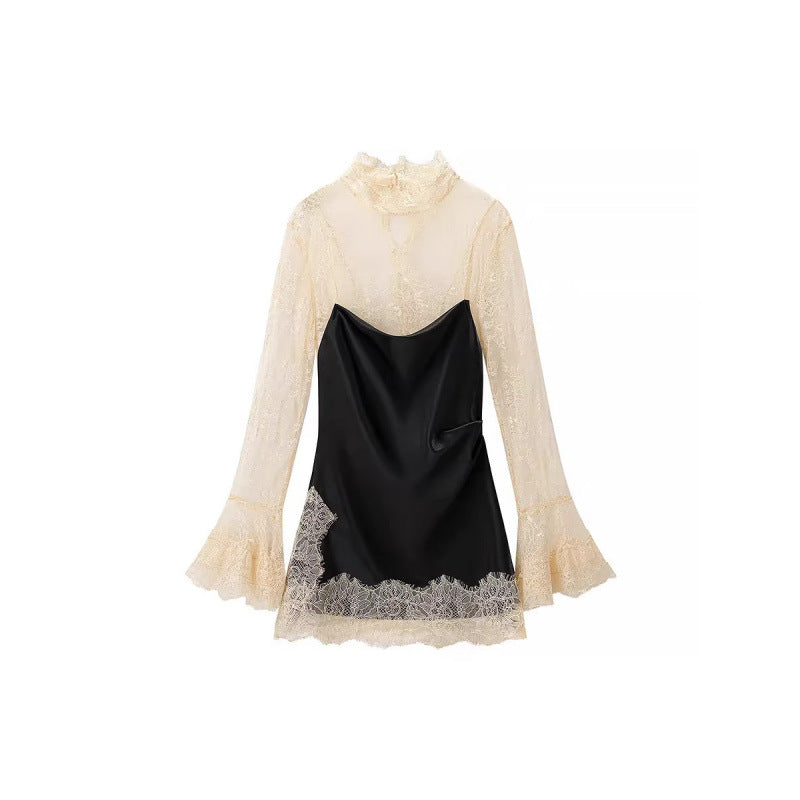 Small-Scale Vintage Hollow Crocheted Shoulder Sling Knitted Shirt Two Sets Of Women's Half-Dress