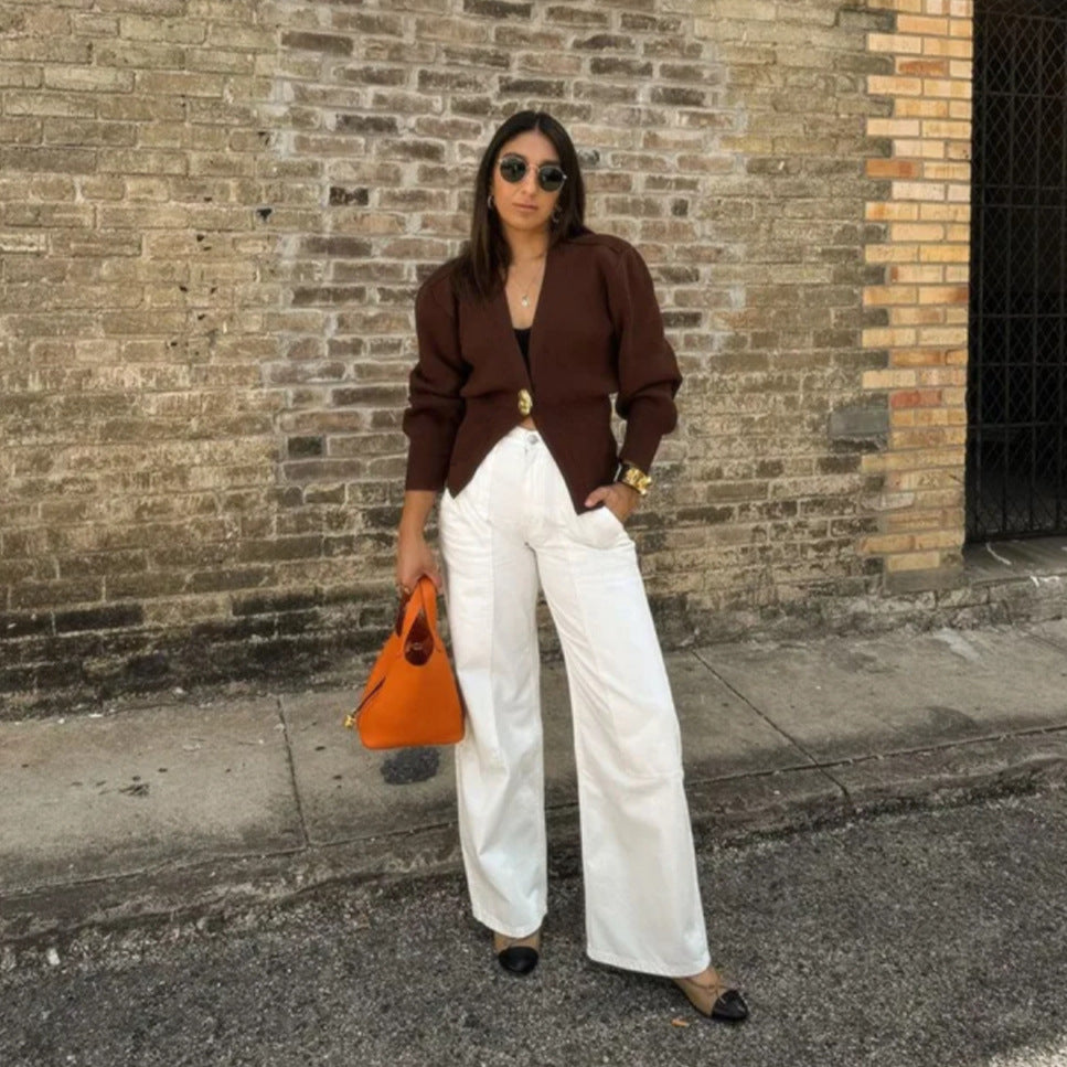 Women's Clothing 2025 New Street Fashion Two-Color Long-Sleeved Knitted Sweater Cardigan